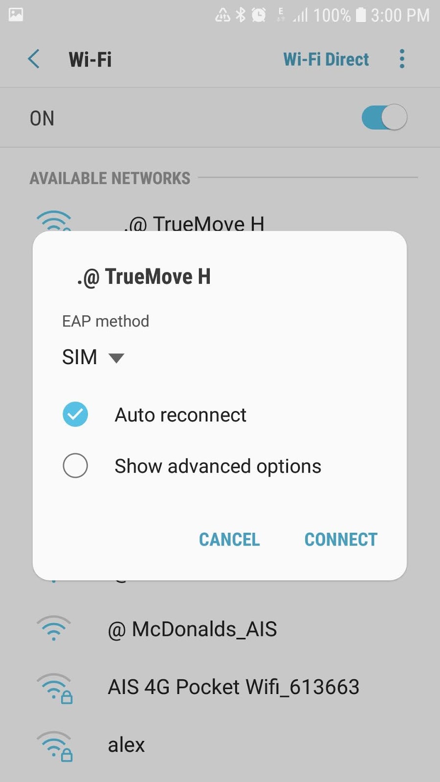 - Mở wifi, tìm mạng ".@ TrueMoveH". Bấm chọn mạng đó.